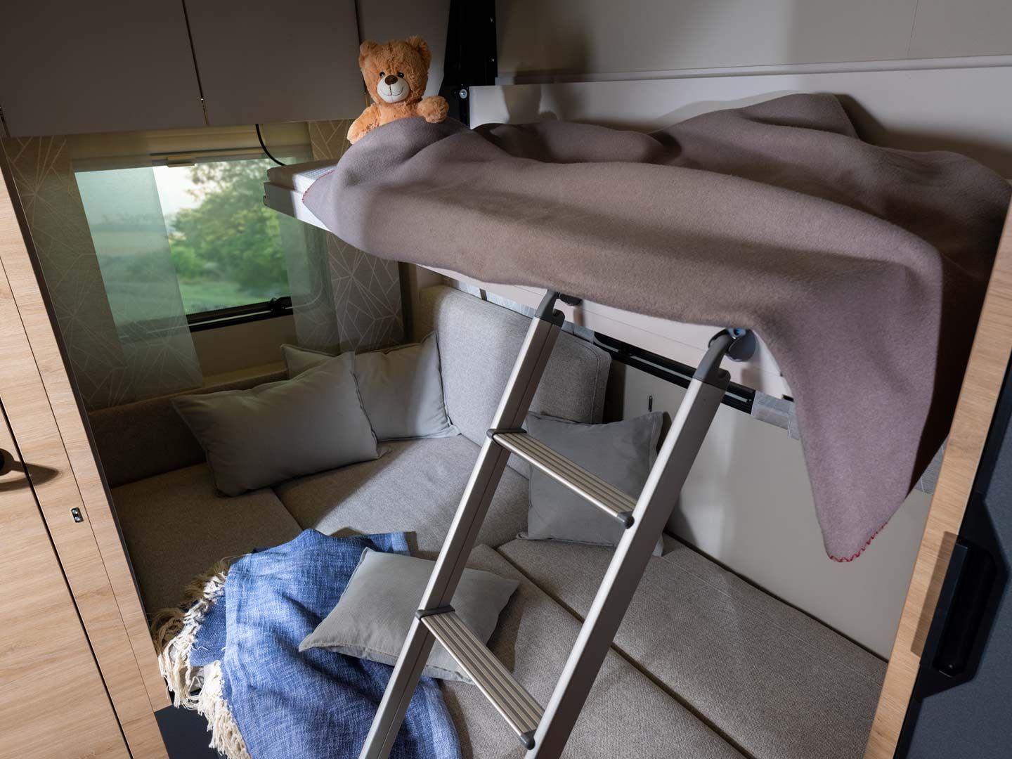 Ключовият елемент в концепцията на Yaseo 340 PX е интегрираният страничен гараж, който реално разширява функционалната площ на кемпера. Той е проектиран така, че да побира електрически скутер или два велосипеда, както и допълнително къмпинг оборудване. Страничното отваряне улеснява достъпа, без да затруднява паркирането или движението около кемпера – решение, което рядко се среща при модели под седем метра. Според Knaus именно този гараж увеличава полезността на интериора с около 20 процента и превръща кемпера в практичен избор за активен начин на живот.
