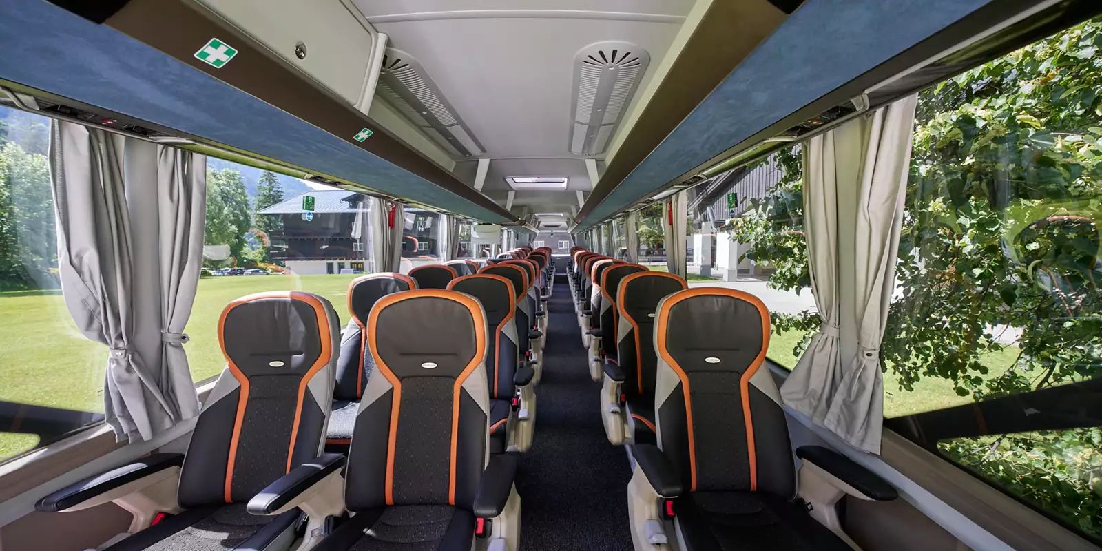 Интериорът на NEOPLAN Tourliner е проектиран с ясен фокус върху удобството и практичността. Равният под улеснява движението в салона и прави достъпа по-лесен за всички пътници, включително хора с намалена подвижност. Благодарение на интегрираната рампа и специално обособените места, автобусът отговаря на съвременните изисквания за достъпност. Комфортът се допълва от модерна климатизация, възможности за зареждане на мобилни устройства и просторни багажни отделения, подходящи за дълги туристически маршрути.